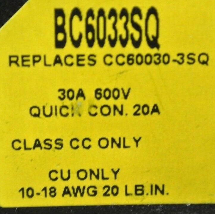 BUSS BC6033SQ FUSE HOLDER / 3-POLE / 30A / 600V / NEW SURPLUS