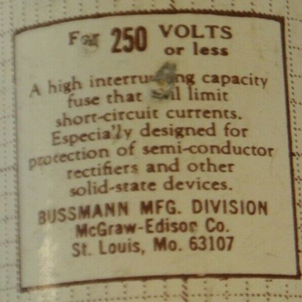 BUSS / BUSSMANN RECTIFIER FUSE