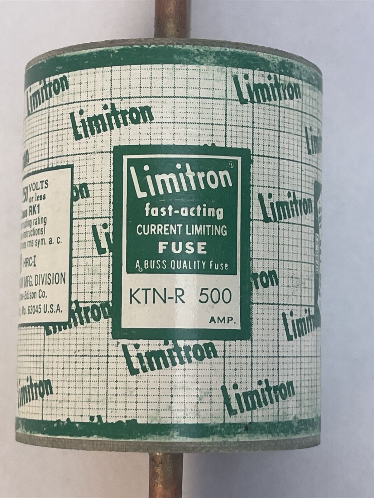 BUSS KTN-R 500 LIMTRON FAST-ACTING CURRENT LIMITING CLASS RK1 FUSE 250V 500AMP