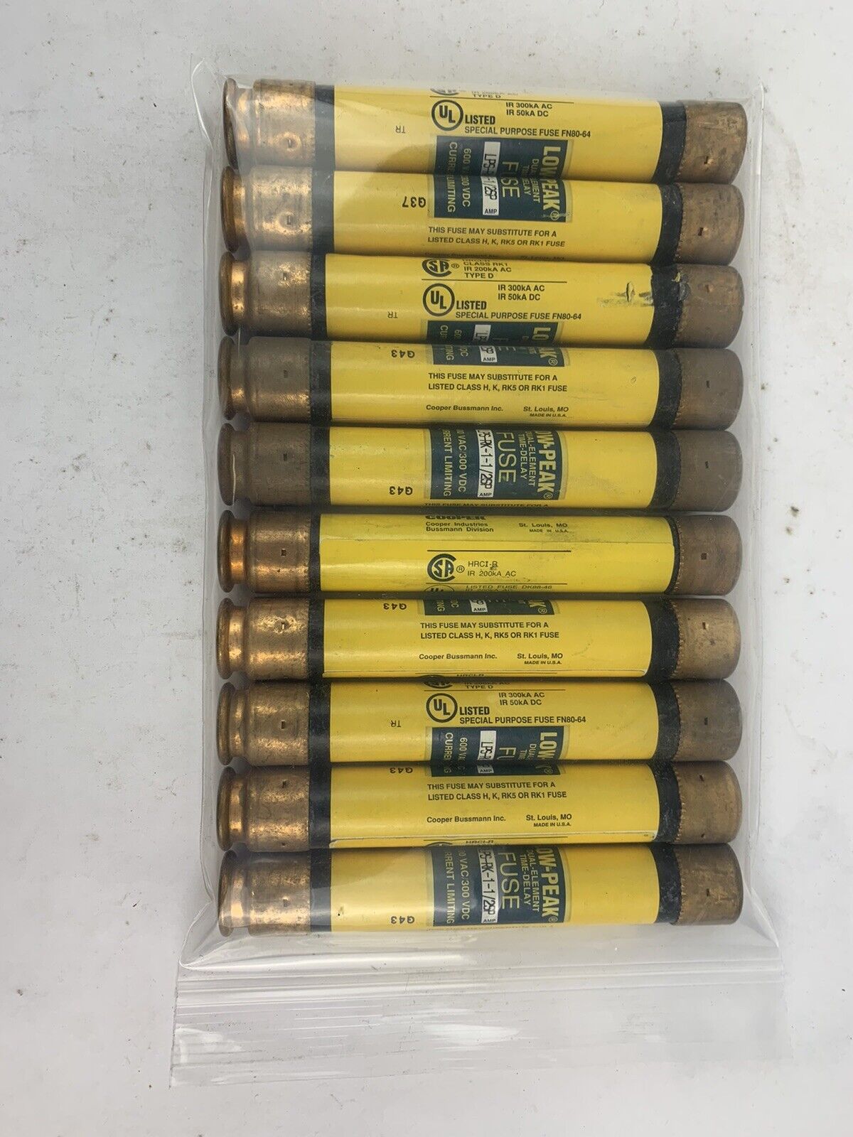 Bussmann Low-Peak Dual-Element LPS-RK-1-1/2SP 1 1/2A 600V Fuse "Lot of 10"