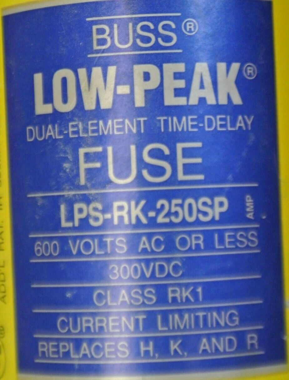 BUSSMANN LPS-RK-250SP LOW-PEAK DUAL-ELEMENT CURRENT-LIMITING FUSE / 250A / 600V