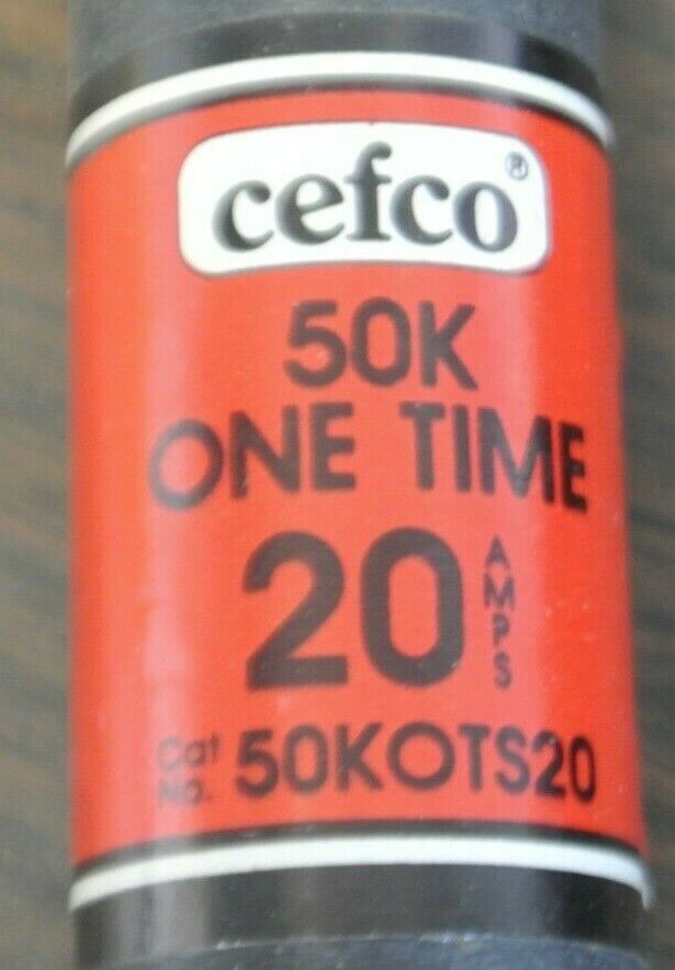 CEFCO 50KOTS20 ONE-TIME CLASS K5 FUSE / 20A / 600V NEW SURPLUS