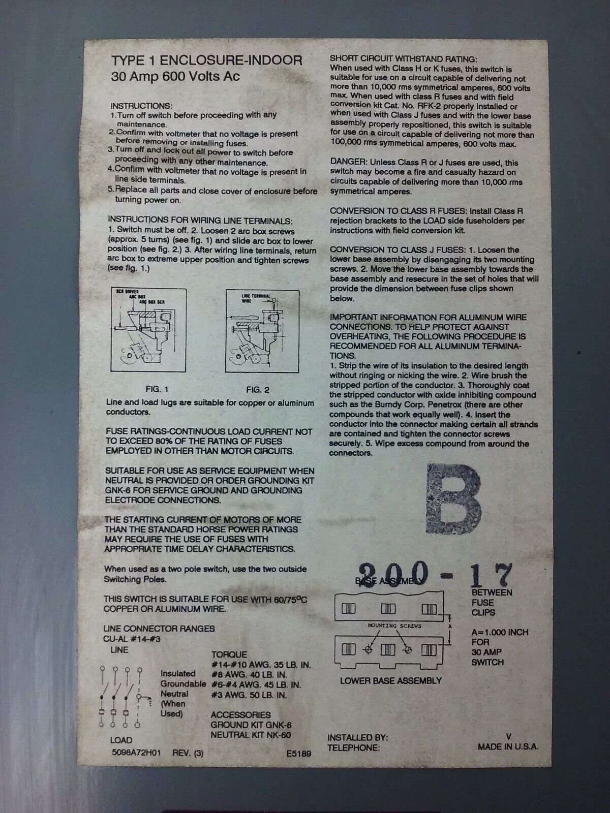 CHALLENGER HD361SNC, SAFETY SWITCH, TYPE 1 INDOOR, 30A, 600V, 3P, FUSIBLE, NEW, HAS SOME SCUFFS ON EXTERIOR BUT GREAT WORKING ORDER/ HUGE LIQUIDATION BUYOUT