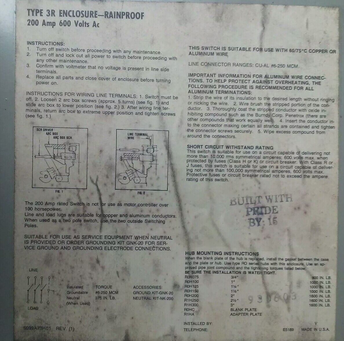 200A, 600V, 3PH, 150HP, TYPE 3R ENCLOSURE RAINPROOF