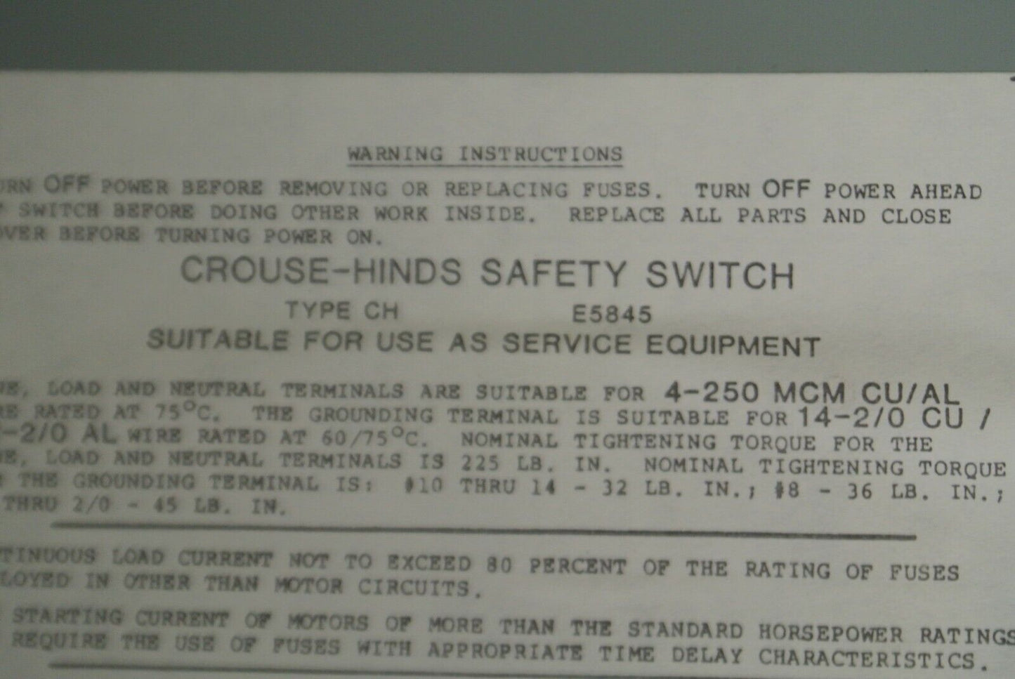 CROUSE-HINDS GENERAL DUTY FUSIBLE SAFETY SWITCH