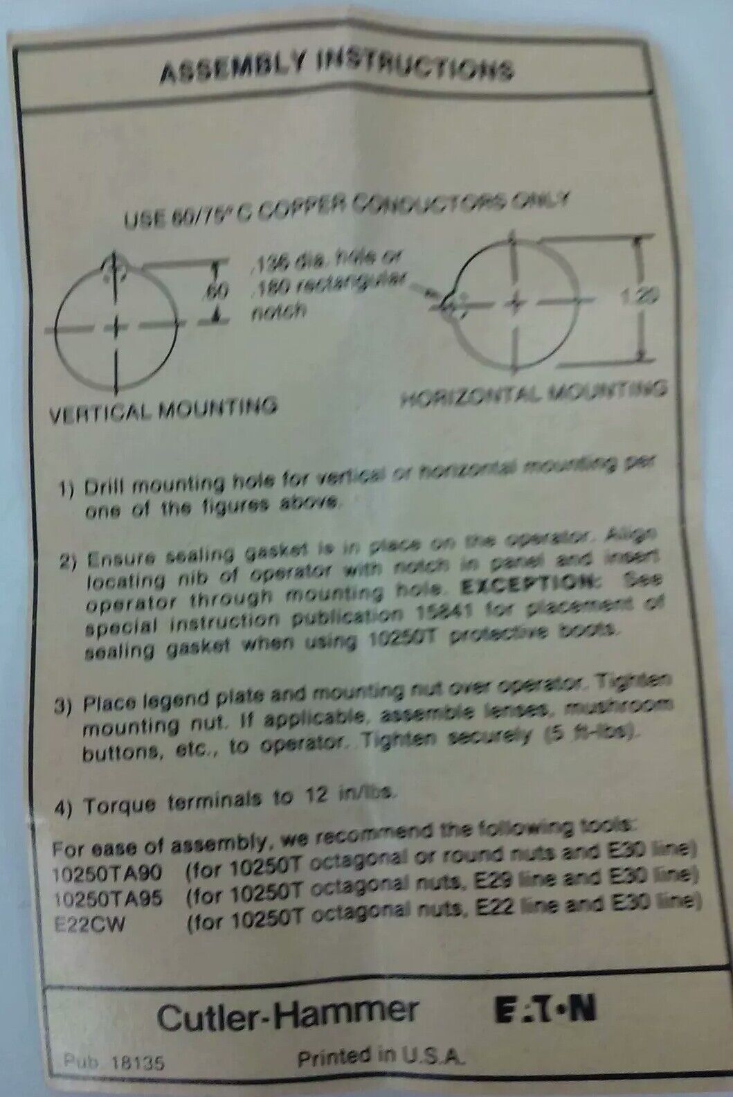 CUTLER HAMMER, 10250T115, 10250T,OPERATOR LONG BUTTON GREEN, NEW