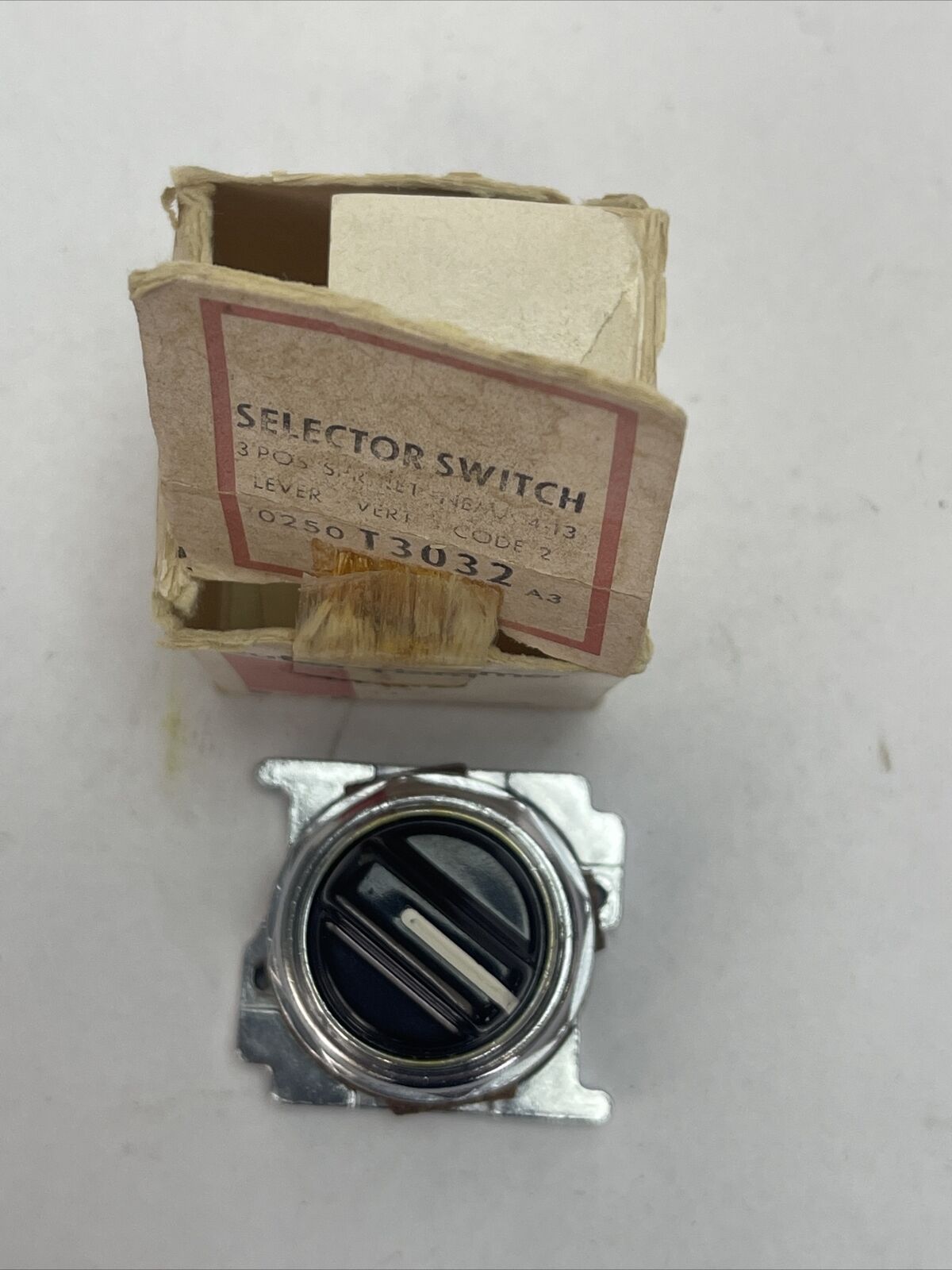 CUTLER HAMMER 10250T3032 SELECTOR SWITCH 3 POS. SPR. RET. NEMA 4-13 LEVER VERT CODE 2