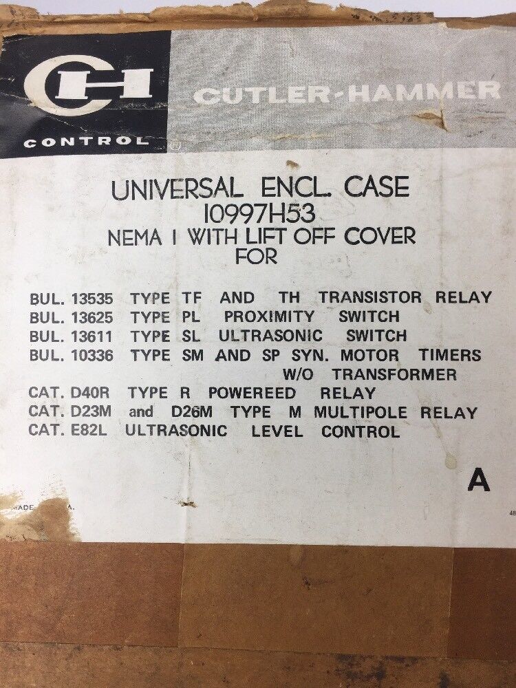 CUTLER HAMMER 10997H53 ENCLOSURE CASE W/LIFT OFF COVER FOR RELAYS TIMERS SWITCH