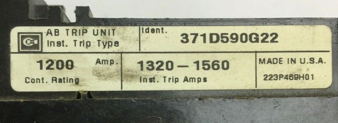 CUTLER HAMMER 371D590G22 AB TRIP UNIT 1200AMP INST TRIP 1320-1560AMP