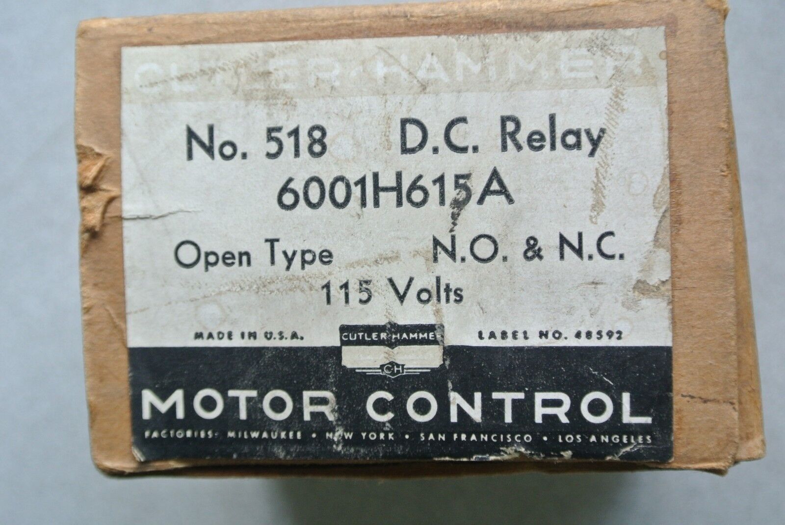 CUTLER-HAMMER 6001H615A 115VDC RELAY No. 518 OPEN TYPE N.O. & N.C. NEW SURPLUS
