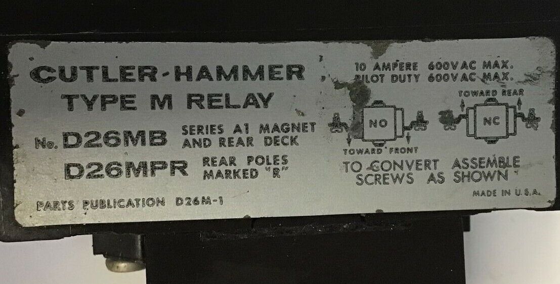 CUTLER HAMMER D26MT SER.A1 RELAY W/ D26MPR TYPE M RELAY