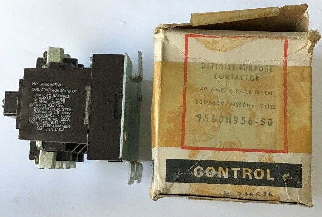 CUTLER HAMMER DEFINTITE PURPOSE CONTACTOR 9560H956A 208/240V 50/60CY