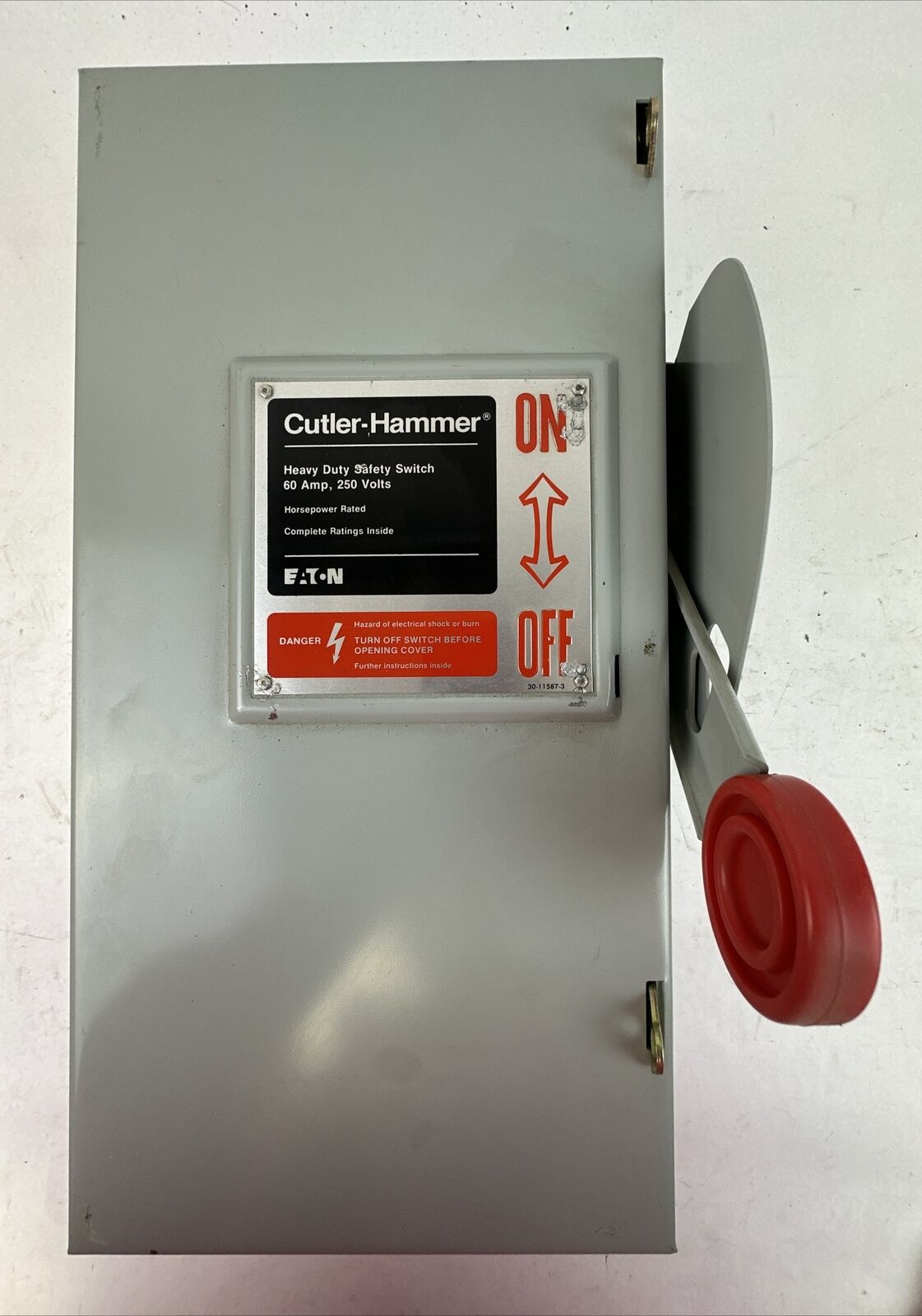 CUTLER HAMMER DH322FGK FUSIBLE SAFETY SWITCH 240VAC 3PH 15HP 250VDC 10HP 3P 60A TYPE 1 ENCLOSURE
