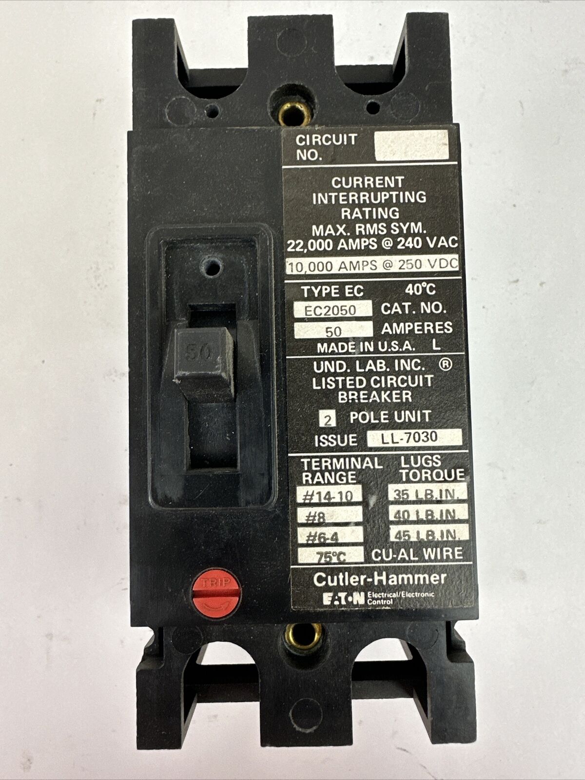 CUTLER HAMMER EC2050 CIRCUIT BREAKER 50AMP 240VAC 250VDC 2POLE
