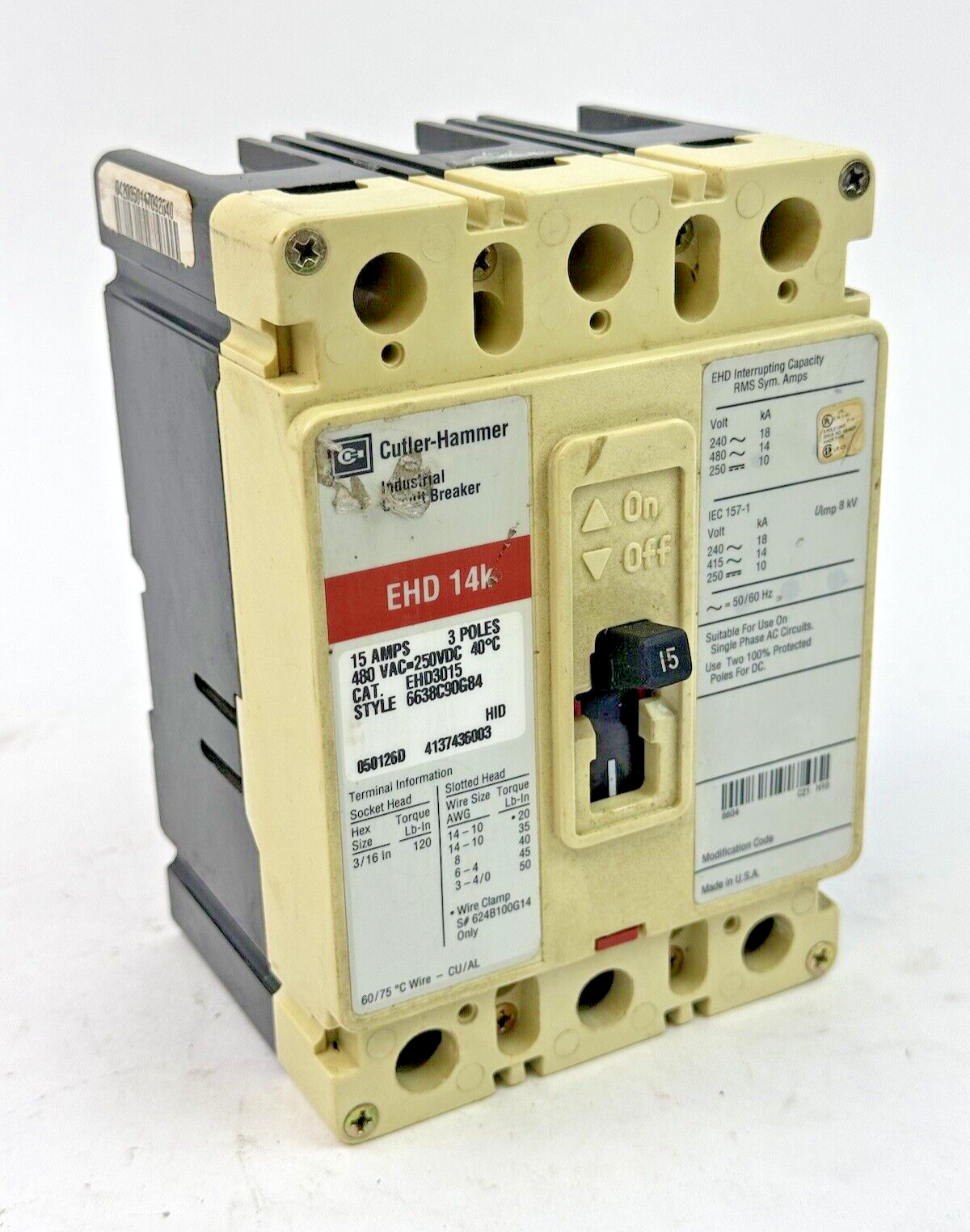 CUTLER-HAMMER - EHD3015 - CIRCUIT BREAKER - 3 POLE/ 15 A/ 480 VAC