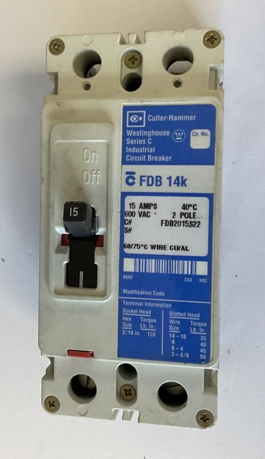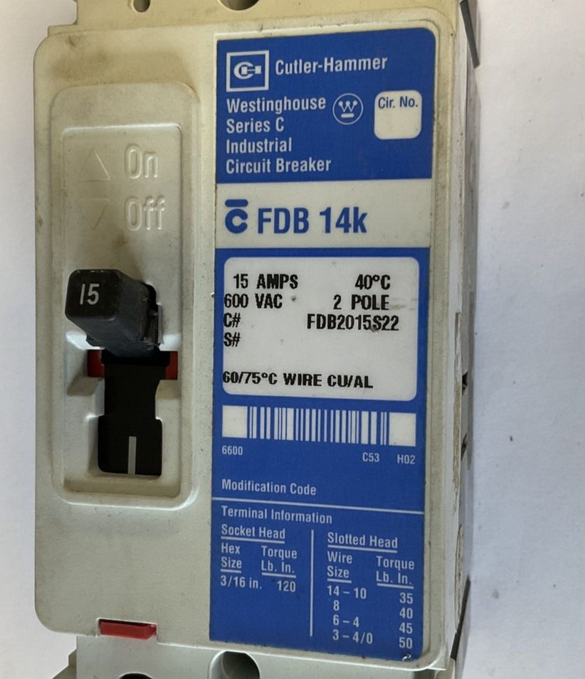 CUTLER HAMMER FDB2015S22 CIRCUIT BREAKER 15A 2POLE 600VAC