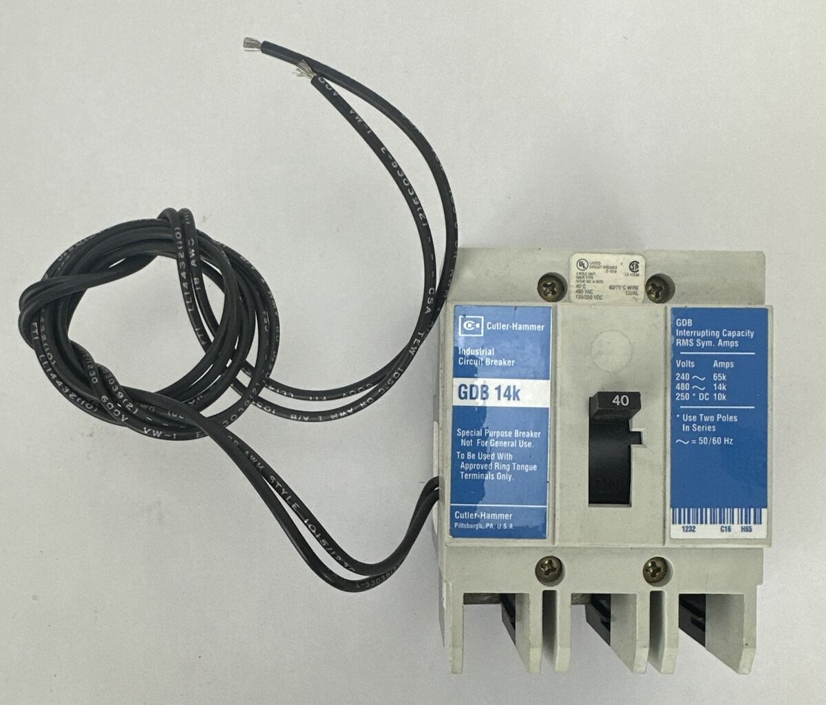 CUTLER HAMMER GDB3040 CIRCUIT BREAKER 480VAC 250VDC 3P 40A GDB 14K 1373D62G01