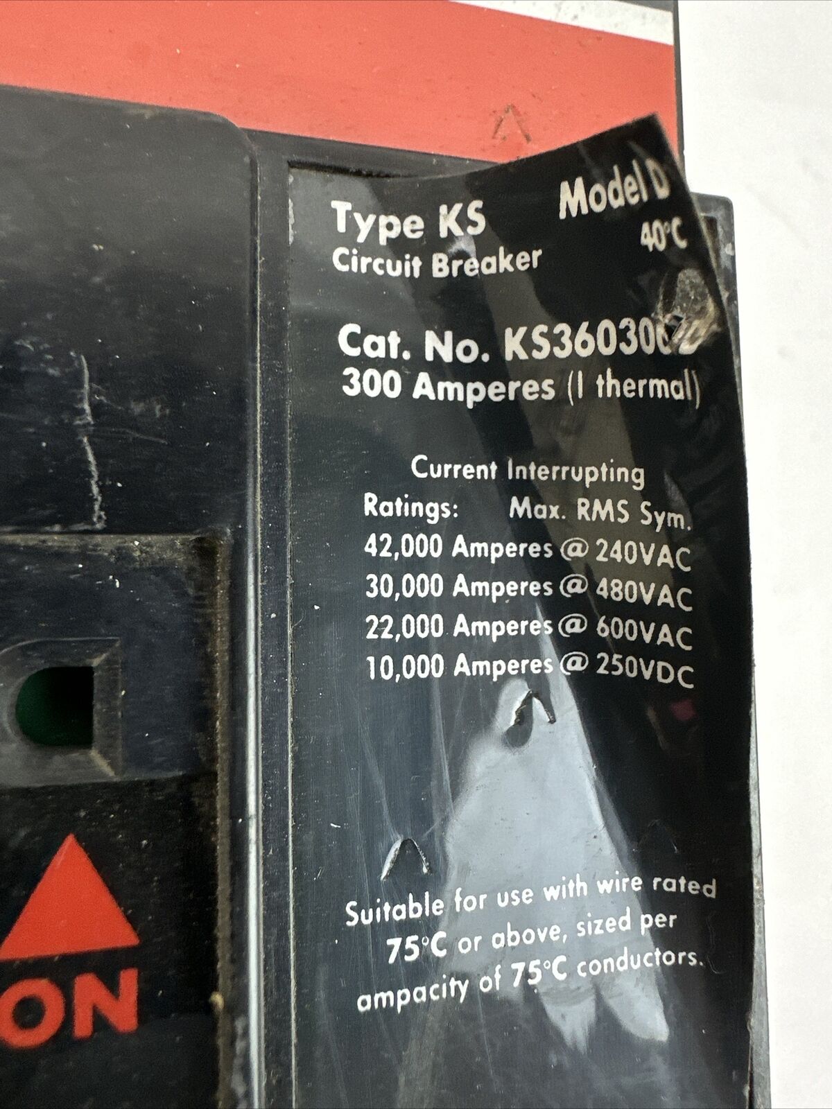 CUTLER HAMMER KS360300D CIRCUIT BREAKER MODEL D 300AMP 600VAC 250VDC 3POLE