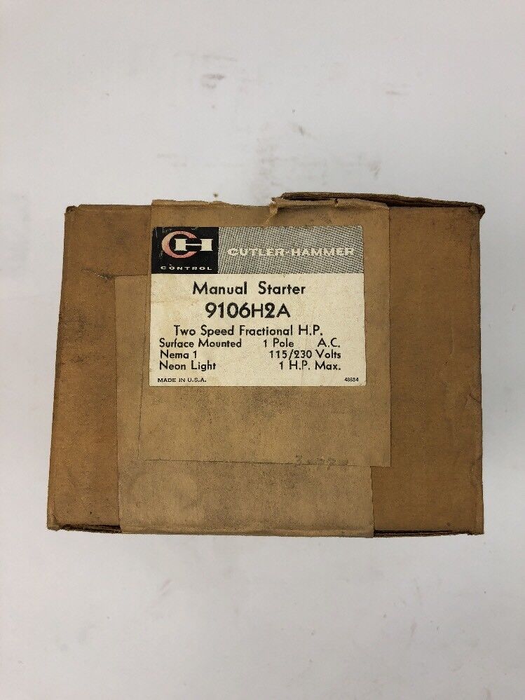 CUTLER-HAMMER MANUAL STARTER 9016H2A, 1 POLE, NEMA 1, 115/230V, 1HP, MAX, NEW
