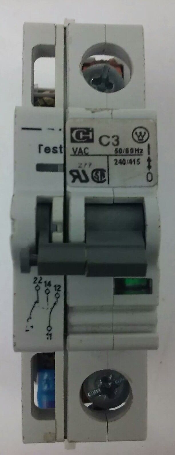 CUTLER HAMMER SPCL1C03, SPCLUAUX TEST CIRCUIT BREAKER, 1P,3A, 277V, USED SURPLUS