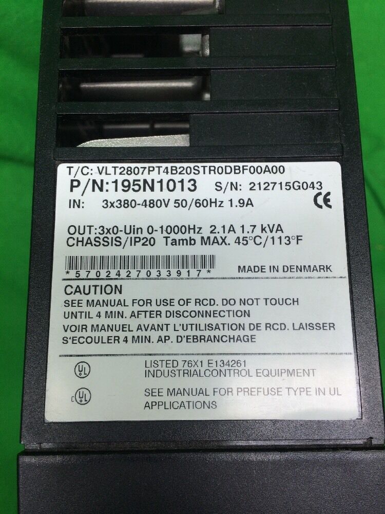 DANFOSS VLT 2800 VARIABLE SPEED DRIVE 195N1013 480V 1.9A