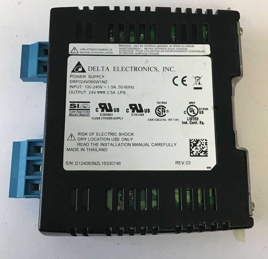 DELTA ELECTRONICS DRP024V060W1NZ POWER SUPPLY 240VAC 1.5A 50-60HZ 24VDC REV.03