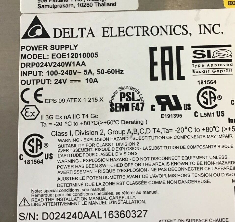 DELTA ELECTRONICS EOE12010005 POWER SUPPLY 100-240VAC 10A