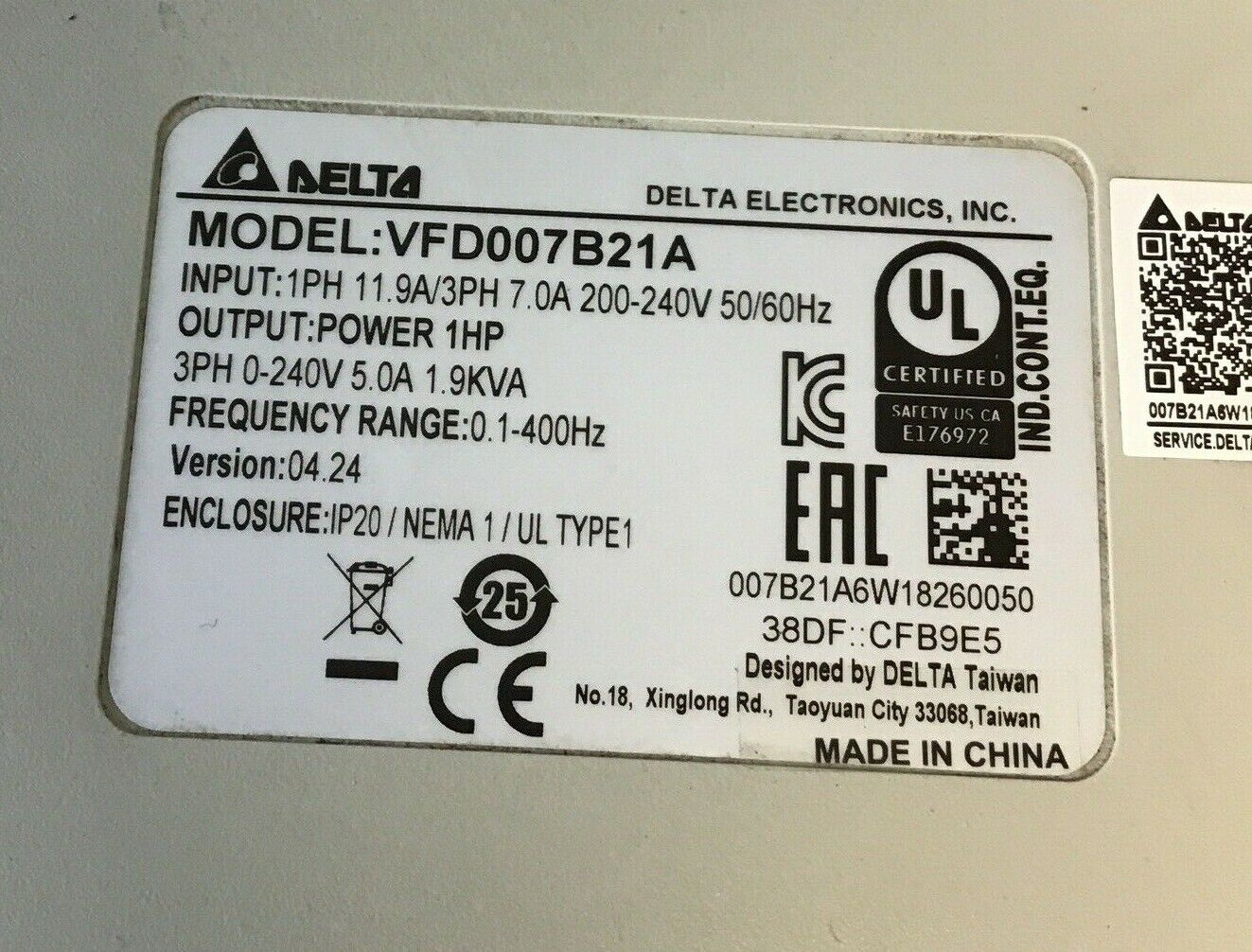 DELTA VFD007B21A AC DRIVE 240V 50/60HZ 1HP VER:04.24