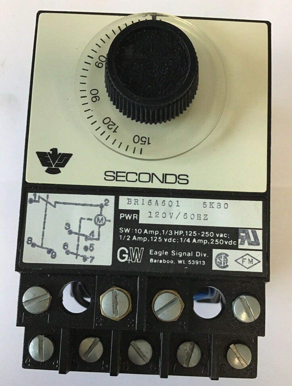 EAGLE SIGNAL BR16A601 RESET TIMER 150SEC. 120V/60HZ 5K80 10A 1/3HP 125-250VAC