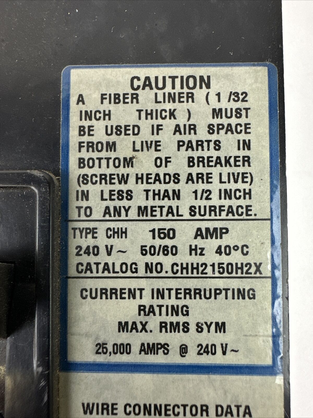 EATON CHH2150H2X CIRCUIT BREAKER 150AMP 240VAC 2POLE