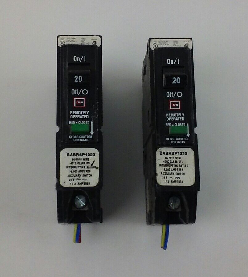 2) Eaton Cutler-Hammer 20 Amp 1-Pole Remote-Operated CIRCUIT BREAKER BABRSP1020