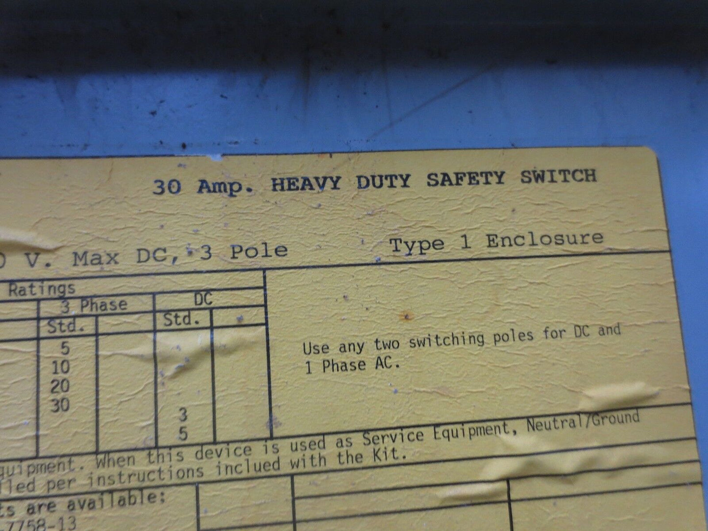 EATON / CUTLER-HAMMER HEAVY DUTY FUSIBLE SAFETY SWITCH