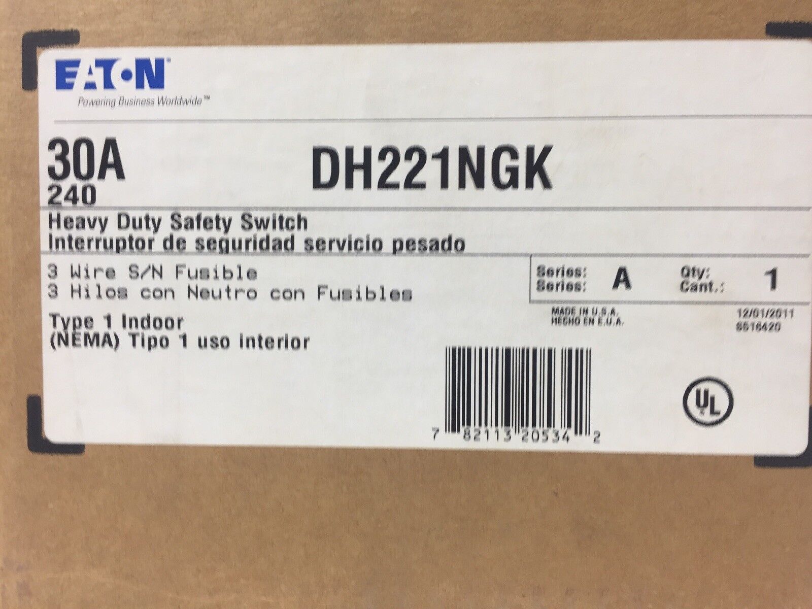 EATON DH221NGK HEAVY DUTY SAFETY SWITCH 3 WIRE S/N FUSIBLE 30 AMP 240 VOLT