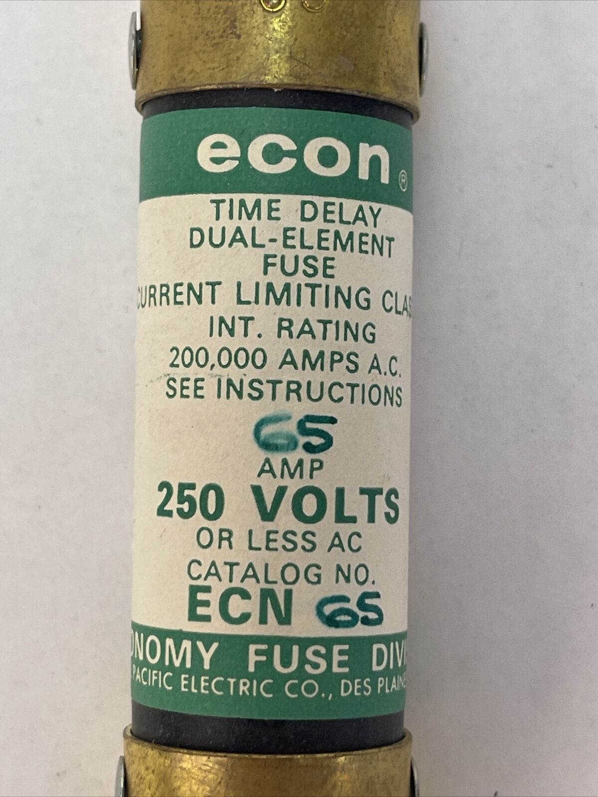 ECONOMY ECN65 TIME DELAY DUAL ELEMENT CURRENT LIMITING CLASS R-K5 FUSE 65AMP 250VAC (LOT OF 5)