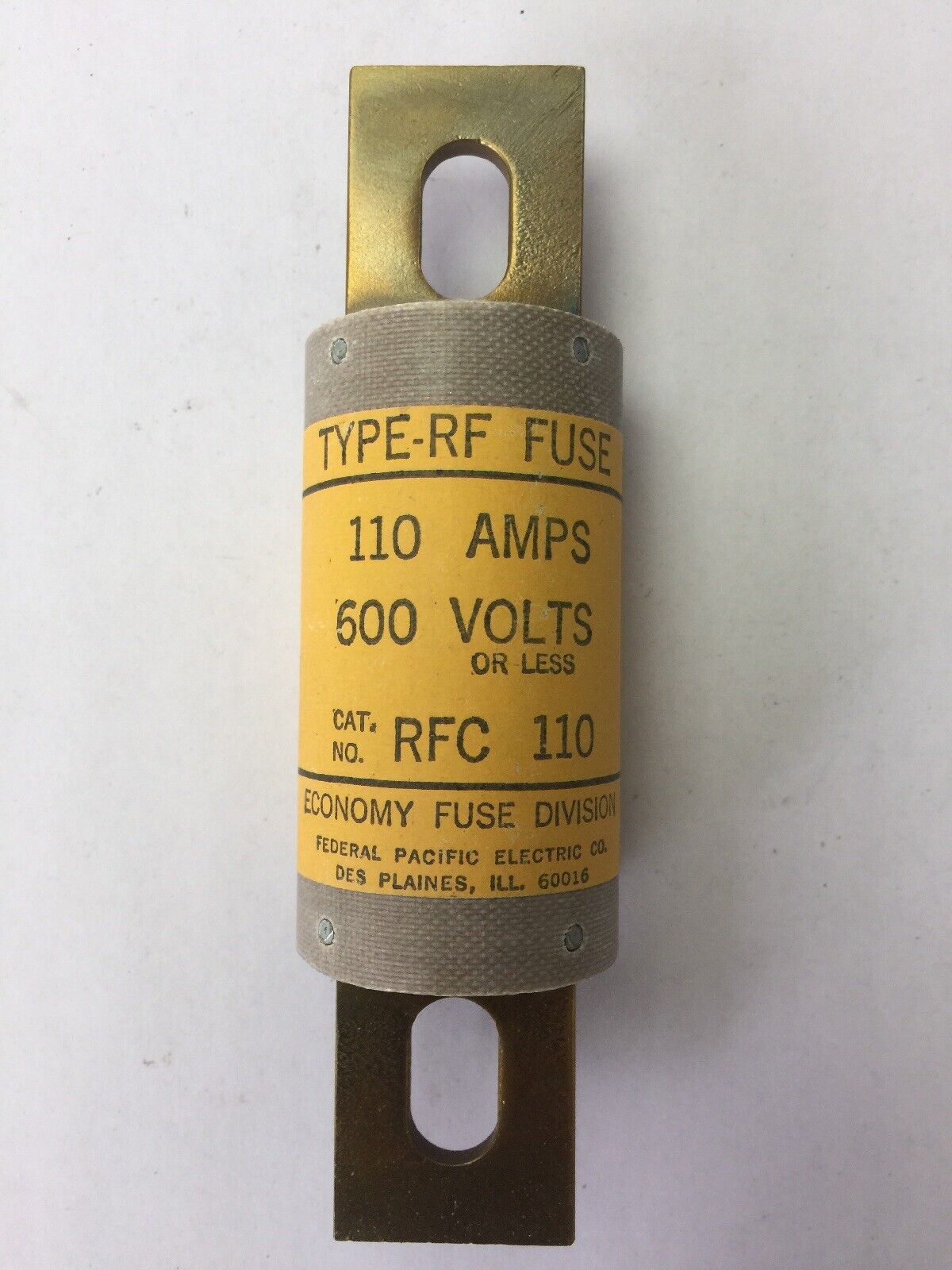 ECONOMY FUSE DIVISION RFC 110 TYPE-RF FUSE 110 AMP 600 VOLTS FEDERAL PACIFIC