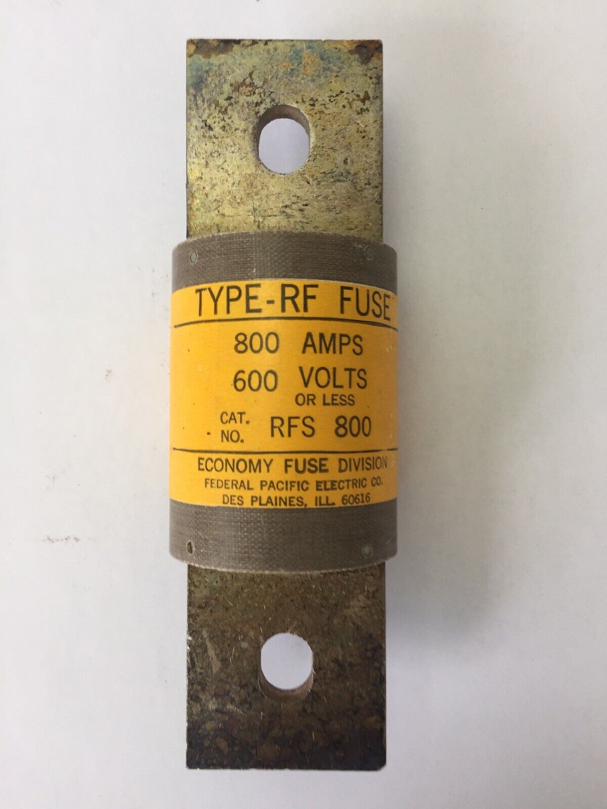 ECONOMY FUSE RFS 800 TYPE-RF FUSE 800 AMP 600 VOLTS FEDERAL PACIFIC ELECTRIC
