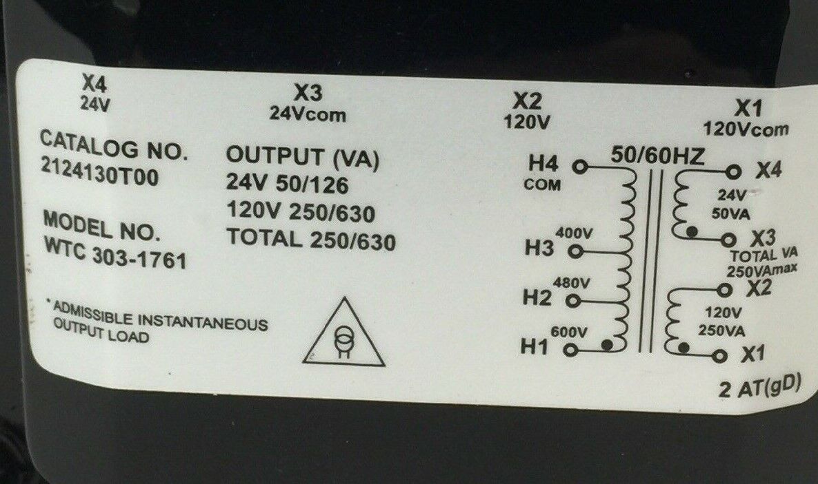 EGS 2124130T00 INDUSTRIAL CONTROL TRANSFORMER OUTPUT(VA) 24V 50/126 120V 250/630 WTC 303-1761