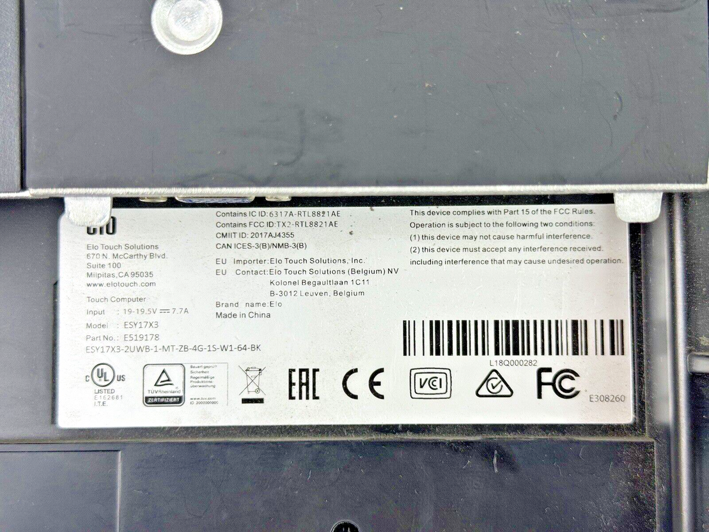 ELO - ESY17X3 - 17" in ALL IN ONE TOUCHSCREEN COMPUTER POS AIO SYSTEM - Touch Screen POS i3-6100TE 2.7GHz 8GB RAM 120GB SSD Windows 10 PRO - SEE CONDITION DESCRIPTION
