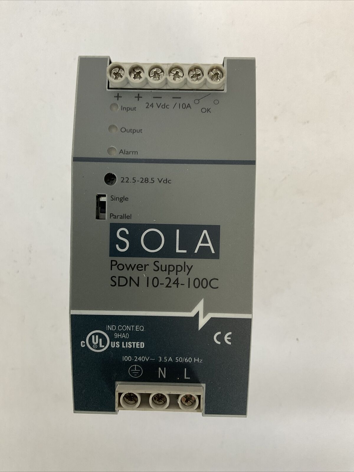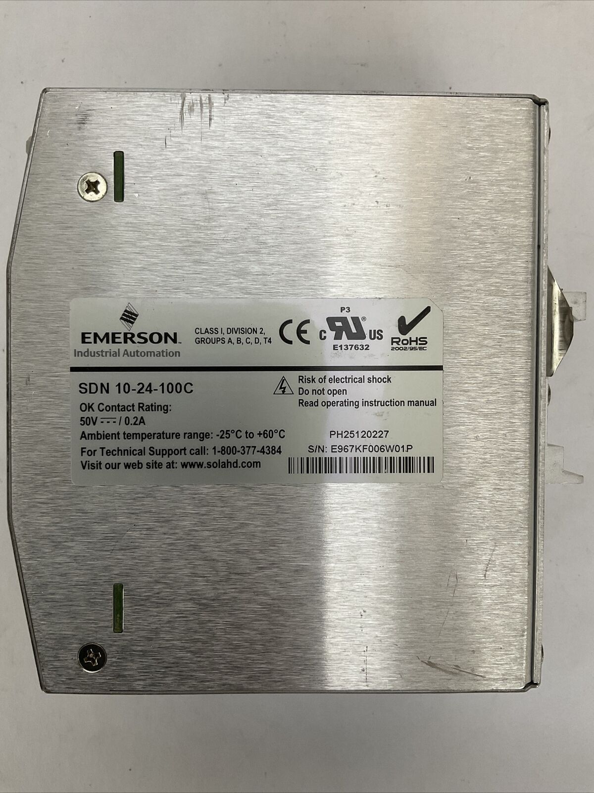 EMERSON SOLA SDN 10-24-100C POWER SUPPLY OUPUT 24VDC 10A INPUT 100-240VAC 3.5A