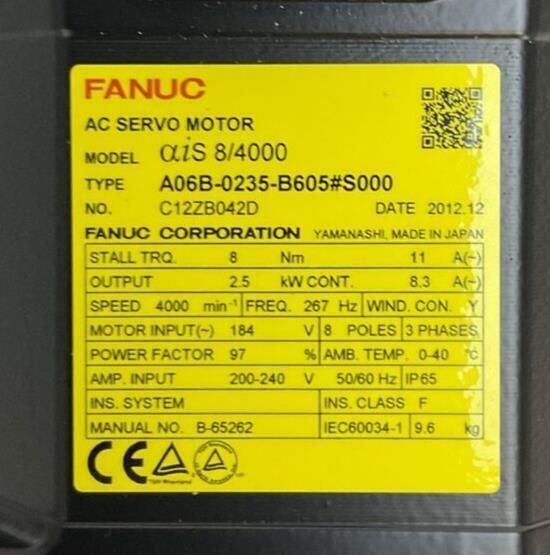 FANUC A06B-0235-B605#S000 AC SERVO MOTOR OUTPUT 2.5kW CONT 8.3A A860-2010-T341 PULSECODER aiAR128