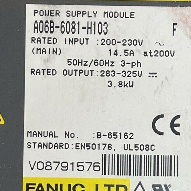 FANUC A06B-6081-H103 POWER SUPPLY MODULE OUTPUT 283-325VDC INPUT 200-230VAC