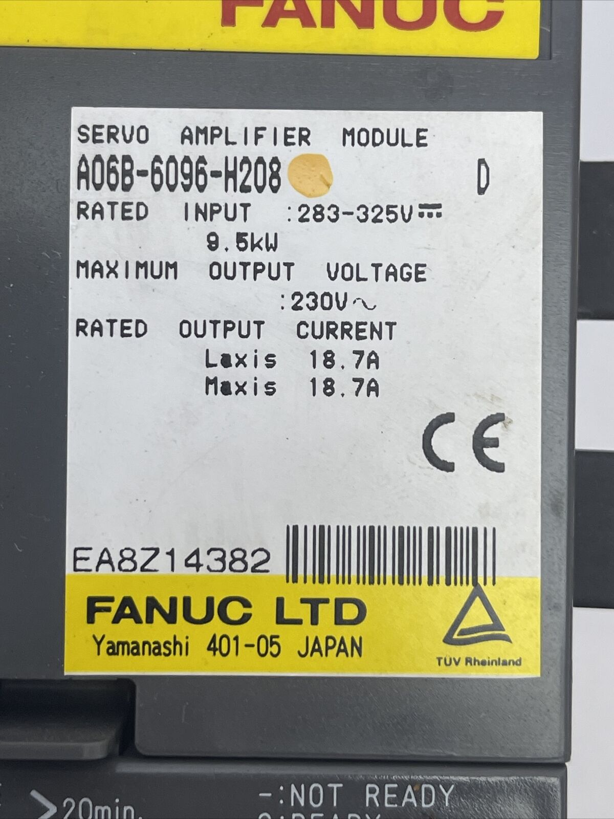 FANUC A06B-6096-H208 SERVO AMPLIFIER SER D INPUT 283-325VDC OUTPUT 230VAC 18.7A