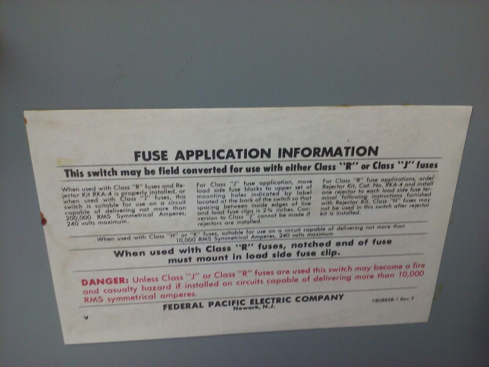 FEDERAL PACIFIC ELECTRIC 1132R FUSIBLE HEAVY DUTY SAFETY SWITCH