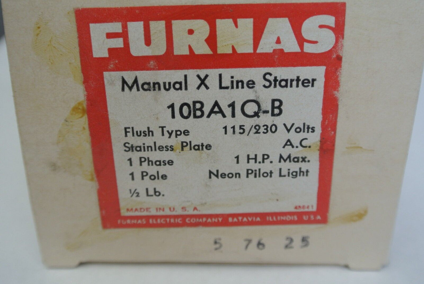 FURNAS 10BA1Q-B MANUAL X LINE STARTER 115/230V, w/ NEON PILOT LIGHT NEW SURPLUS