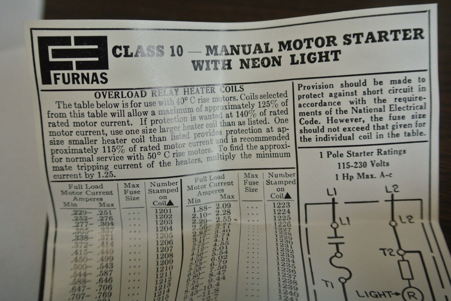 FURNAS MANUAL X LINE STARTER - FLUSH TYPE