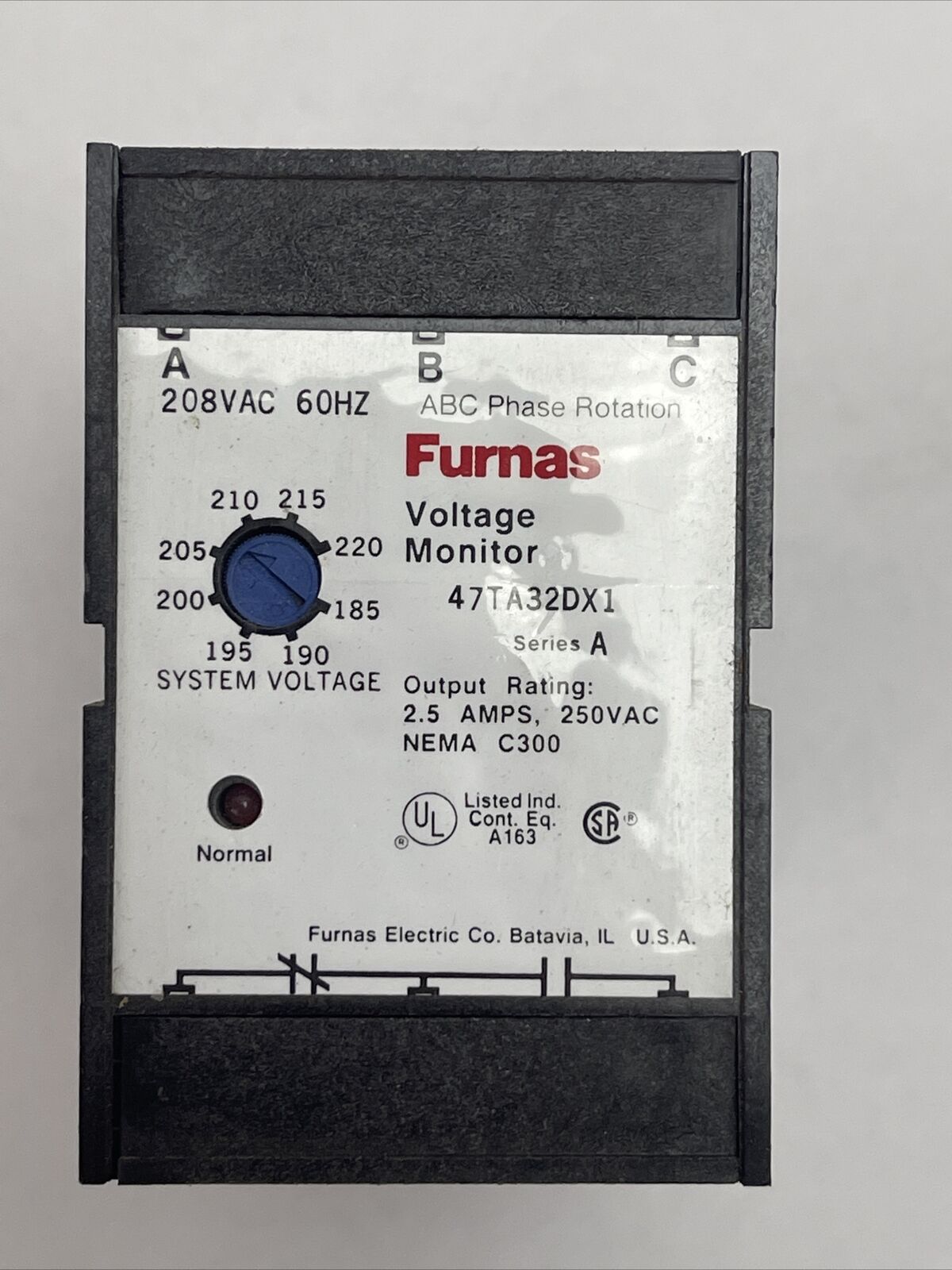 FURNAS 47TA32DX1 VOLTAGE MONITOR 208VAC 60HZ SER A OUTPUT 2.5A 250VAC NEMA C300