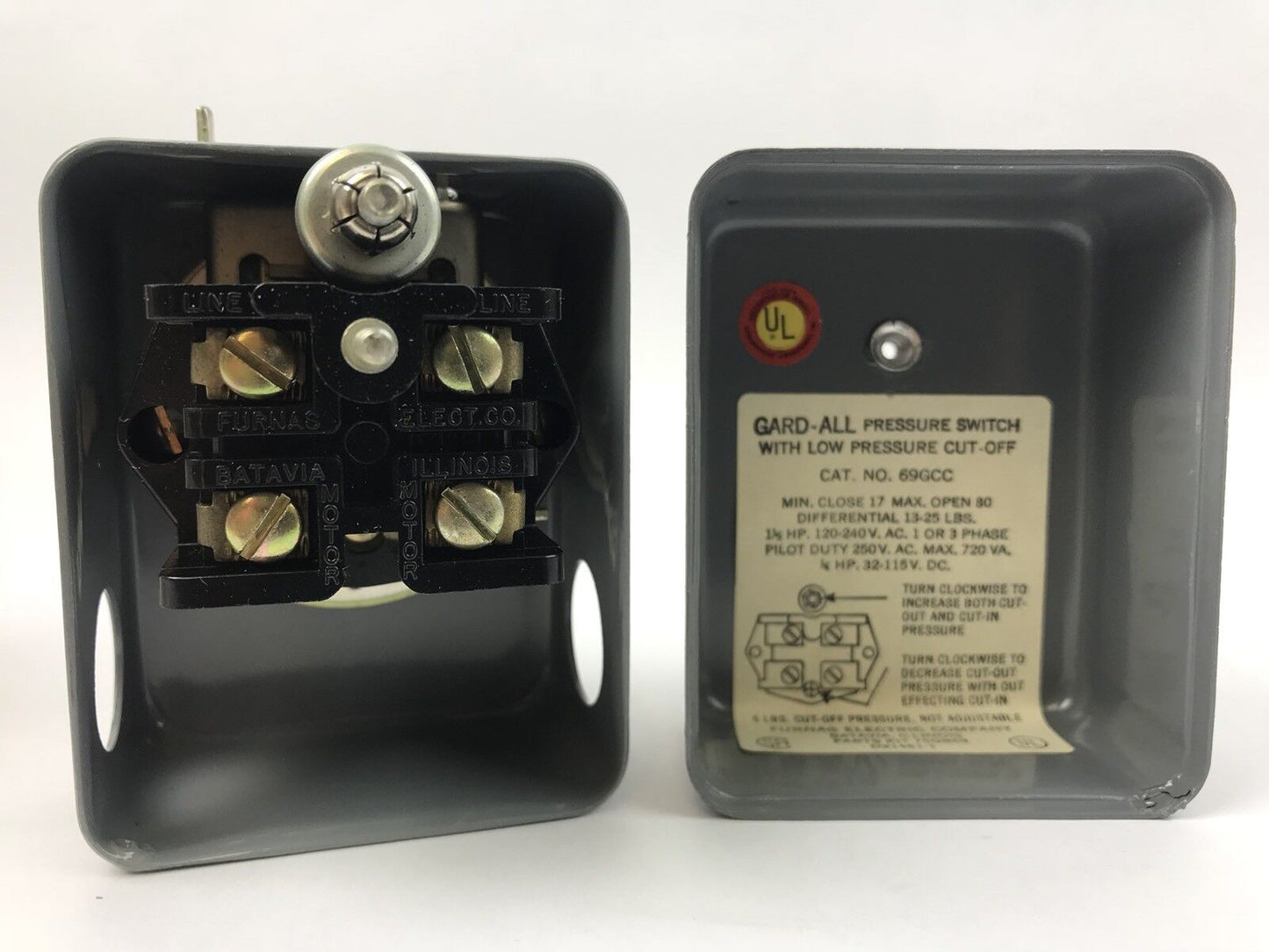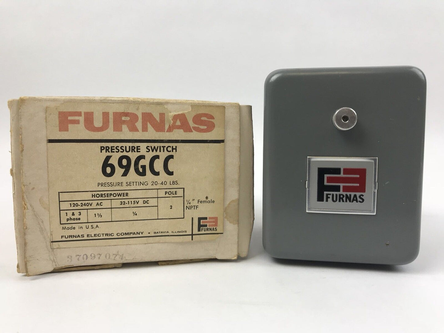 FURNAS 69GCC PRESSURE SWITCH, 120-240V AC 1 1/2 HP, 35-115V DC 1/4 HP. *NEW*