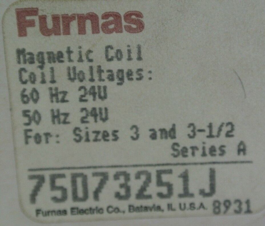 FURNAS 75D73251J MAGNETIC COIL 24V, 50/60Hz - for SIZE 3 & 3-1/2 - NEW SURPLUS