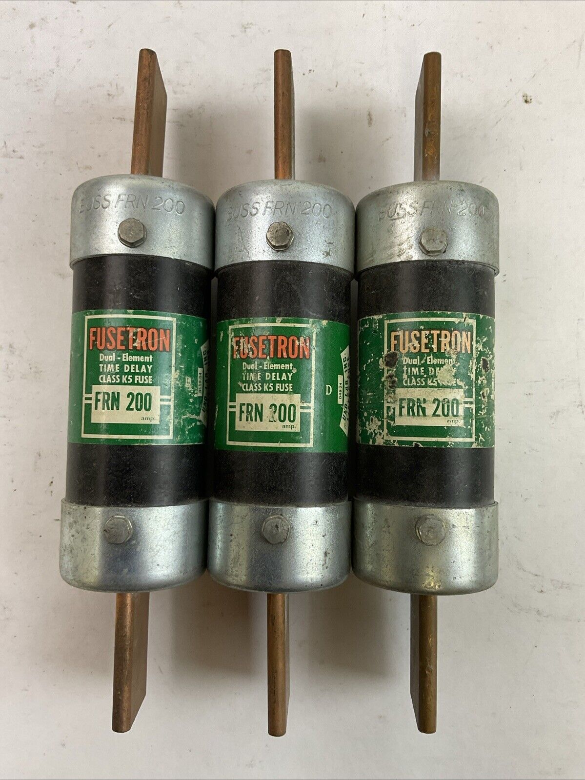FUSETRON FRN 200 DUAL ELEMENT TIME DEALY FUSE 200AMP 250VAC (LOT OF 3)