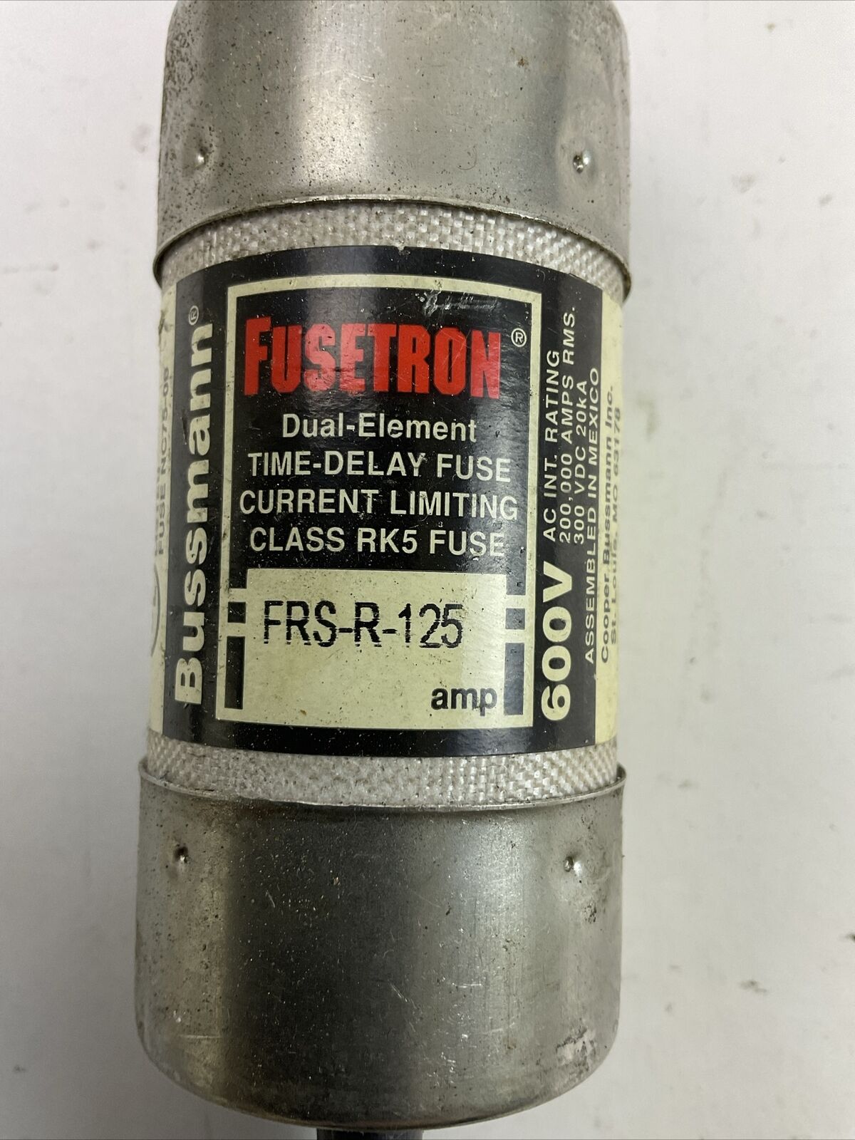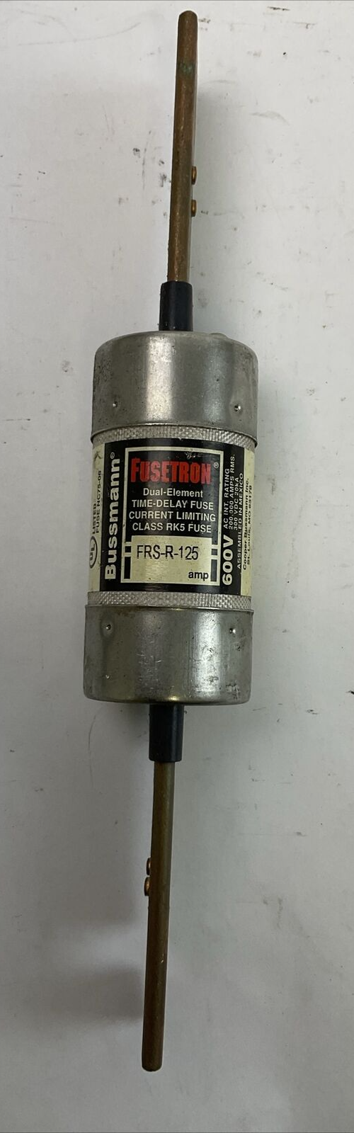 BUSSMANN FUSETRON FRS-R-125 TIME-DELAY CURRENT-LIMITING DUAL-ELEMENT CLASS RK5 FUSE 600VAC 125AMP